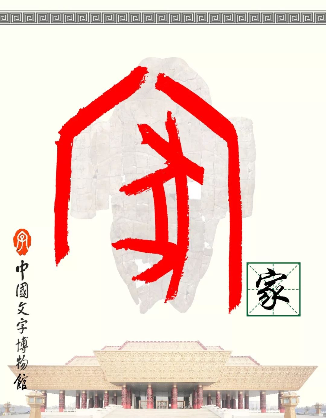 家:从宀从豕,本义为人之所居。卜辞中也用作地名、先王之宗庙。六书中属于会意字。