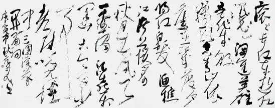 作画既要密不通风,也要宽可跑马——书法也是如此。一个字的结构要有宽有紧,或一个字宽一个字紧。有时书者可把两个字作一个字写,写得紧紧的,再下去就突然宽敞起来。不仅上下要有宽紧,左右也如是。写了一行,下一行要看上一行而变。其它的变化也是要上下左右一起顾及的。