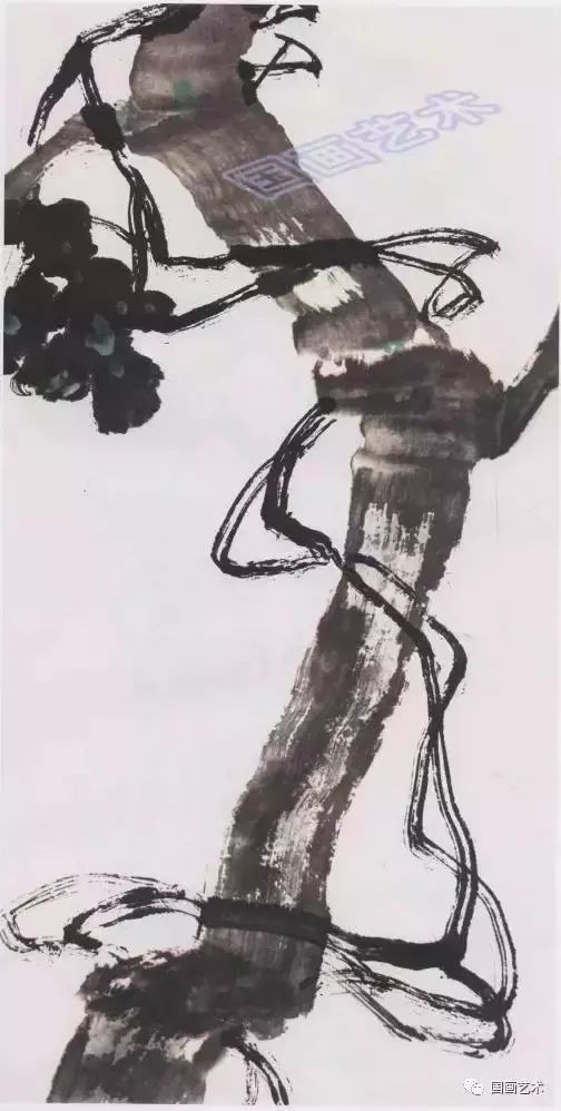 画老藤,通常用墨较淡,用笔较干。行笔时要灵活,有顺锋、逆锋、转笔等动作,多出现飞白。