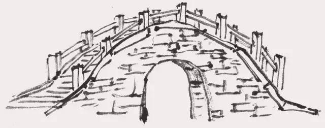 与木桥的原理相同,石桥的桥面是由石块拼接而成的,与单薄的木桥相对重量感很强,因此墨线应较为硬挺且棱角分明。表现石桥的纹理时,不要将每一条线都勾勒出来,意到即可。