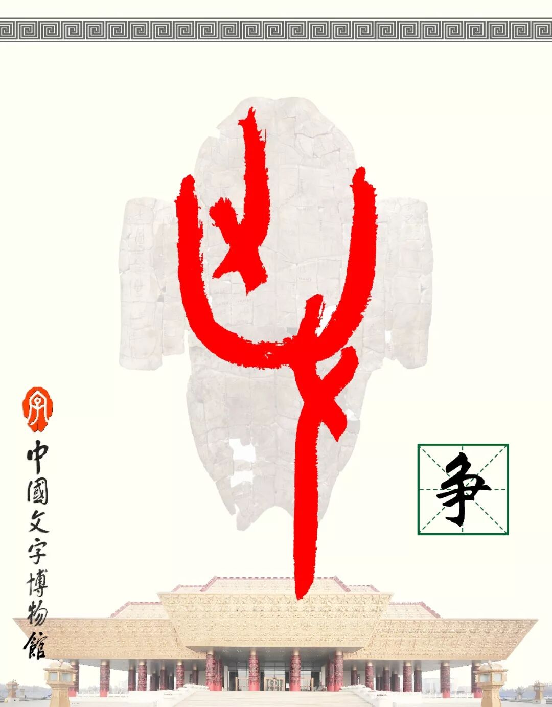 争:上下为二手,中间为一物,表示二手互相牵引拉扯。卜辞中多用作人名和祭名。在六书中属于会意。