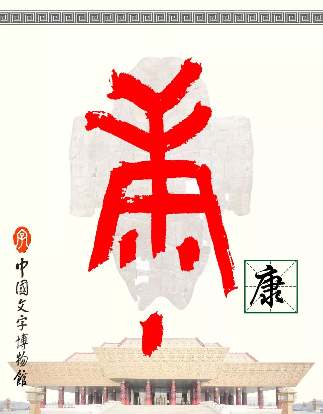 康:从庚表示钲铙类的乐器;点表示发出的乐声。本义为和乐(和睦快乐),卜辞中皆用作人名。在六书中属于指事。