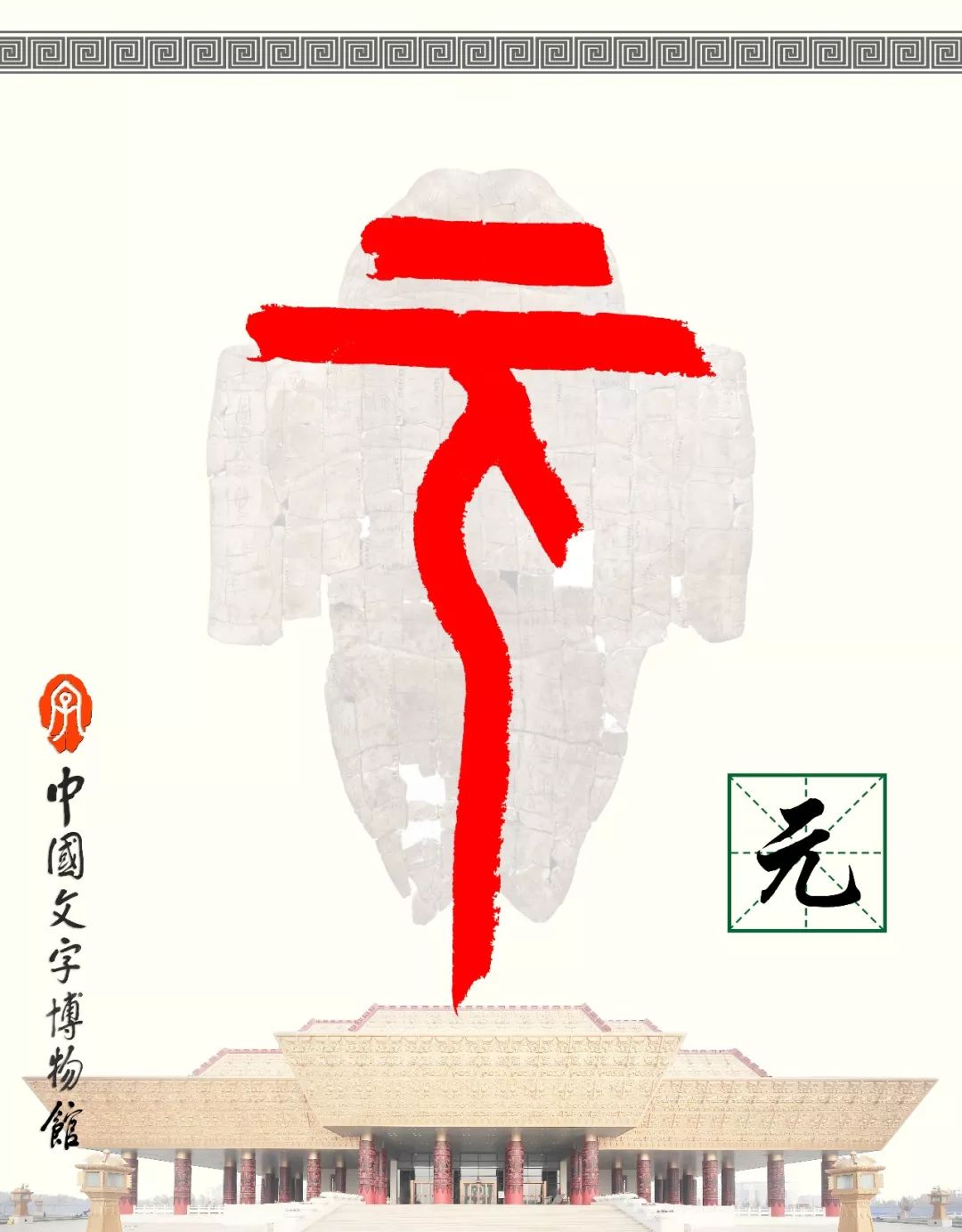 元:两横为甲骨文“上”字,人之上即首(头部),义为开始。卜辞中常用地名,也有大之意。在六书中属于会意。