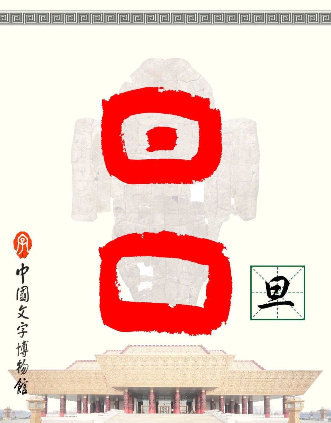 旦:上为日,下为影,日影相接表示太阳初升之时。卜辞中除表清晨,还用做地名。在六书中属于象形。