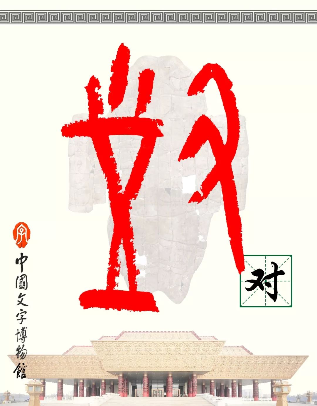 对:从又表手,从丵含义不确,像以手持某物。在卜辞中用作地名。在六书中属于会意。