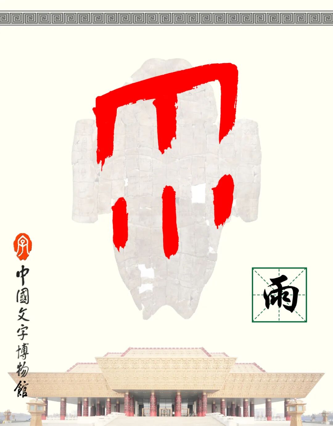 雨:像天空落下雨滴之形。卜辞中用作名词雨和动词下雨。在六书中属于象形。