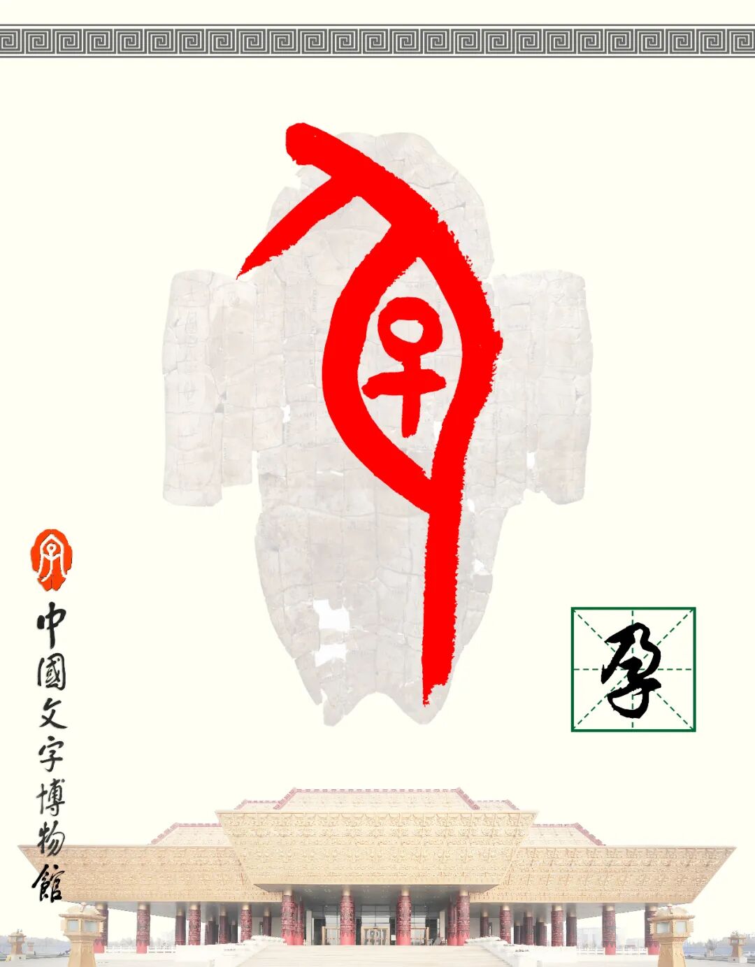 孕:从人腹部隆起,怀胎之意。卜辞中用作妊娠。在六书中属于象形。
